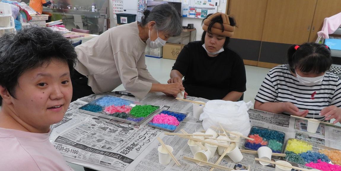 昨年度から取り組んでいるビーズの自主製品に