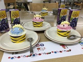 園からのおやつ、ジュース、ケーキと
